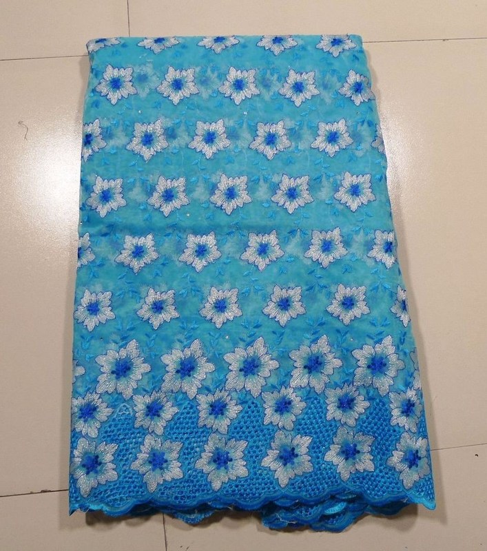 Blue Double Organza Lace Fabric For Evening Dresses 1. Color:Blue 2. Technics: Embroidered 3. Material: Double organza 4. Weight :4-5kgs 5. Width:130-135cm 6. Feature:mixed sequence, stones 7. Use:evening dresses Double Organza Ground Embroidery Lace for Garments or for wedding Party Dress , evening dresses with high quality stones Quick Details Product Tpye: OOrganza Lace Supply Type: Ready goods Material: Double organza Pattern: Embroidered Width: 130-135cm Yarn Count: 15