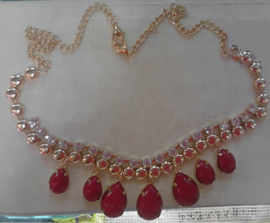 Χειροποίητο περιδέραιο rhinestone ΣΥΝΗΘΕΙΑΣ κόκκινο με την ειδική μορφή, τη χρυσούς αλυσίδα και τους συνδετήρες αστακών