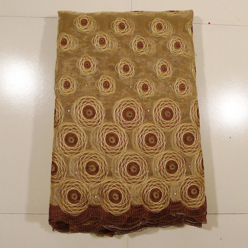 Διπλό ύφασμα δαντελλών Organza καφέ με τις πέτρες