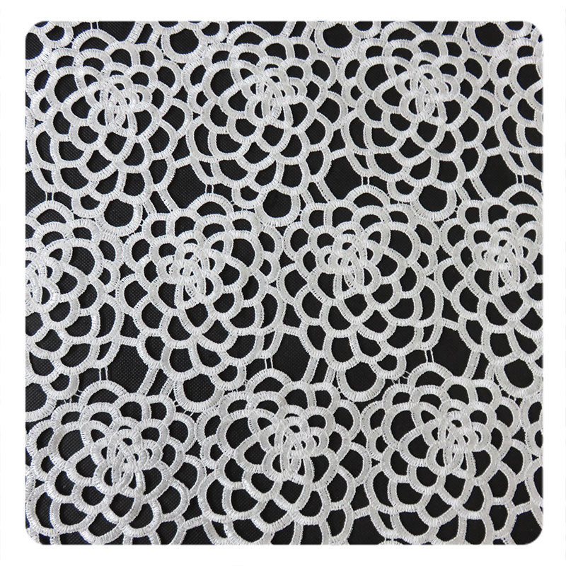 प्राचीन खिंचाव पॉलिएस्टर कढ़ाई फीता कपड़ा, सफेद फूल