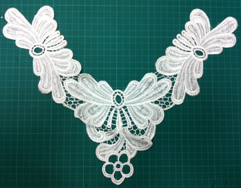 Bordir katun kerah baju motif untuk Pakaian putih, pola kupu-kupu, tersedia warna lain