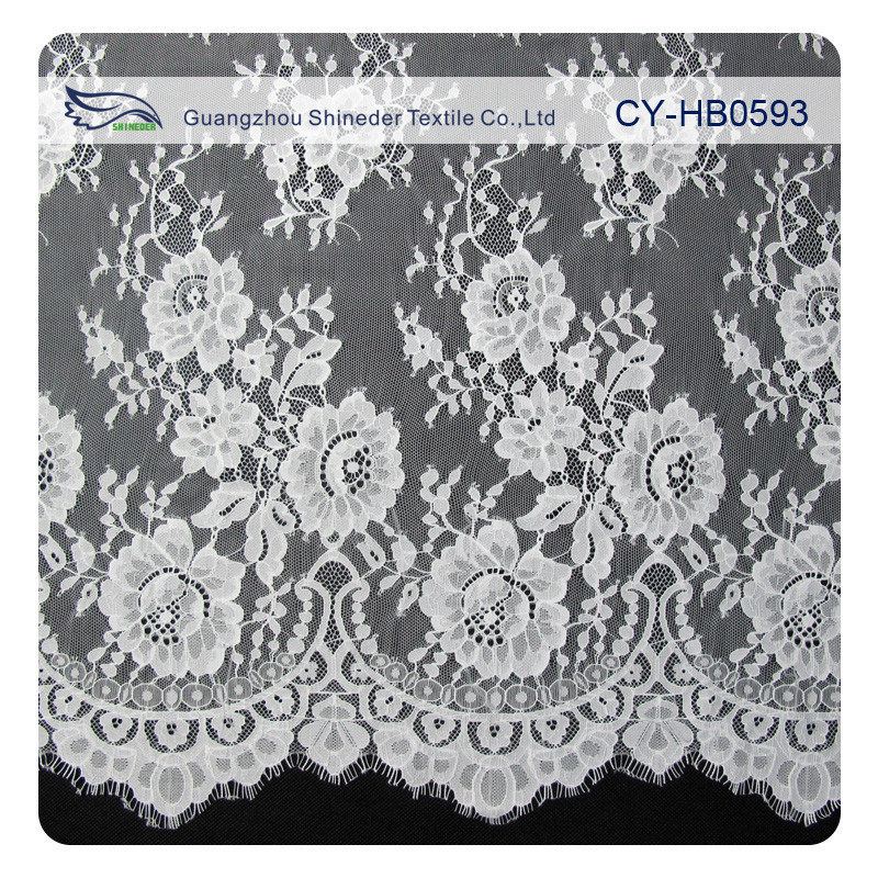 Chantilyのウェディング ドレスのためのナイロン レースの生地、スカラップで仕上げられた花のレースの生地