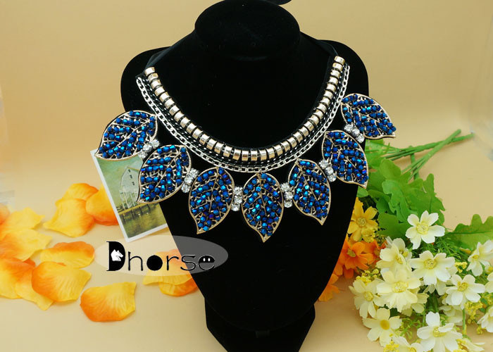 손으로 만든 잎 디자인 파란 결정은 숙녀를 위한 모조 다이아몬드를 가진 구슬로 만드는 고리 목걸이를 구슬로 장식합니다