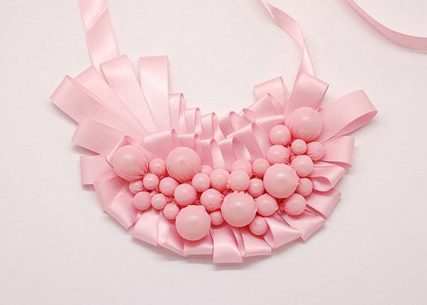 NL-520 صورتی گردنبند یقه منجوق دوزی، مهره پارچه پوشش داده شده صنایع گردنبند