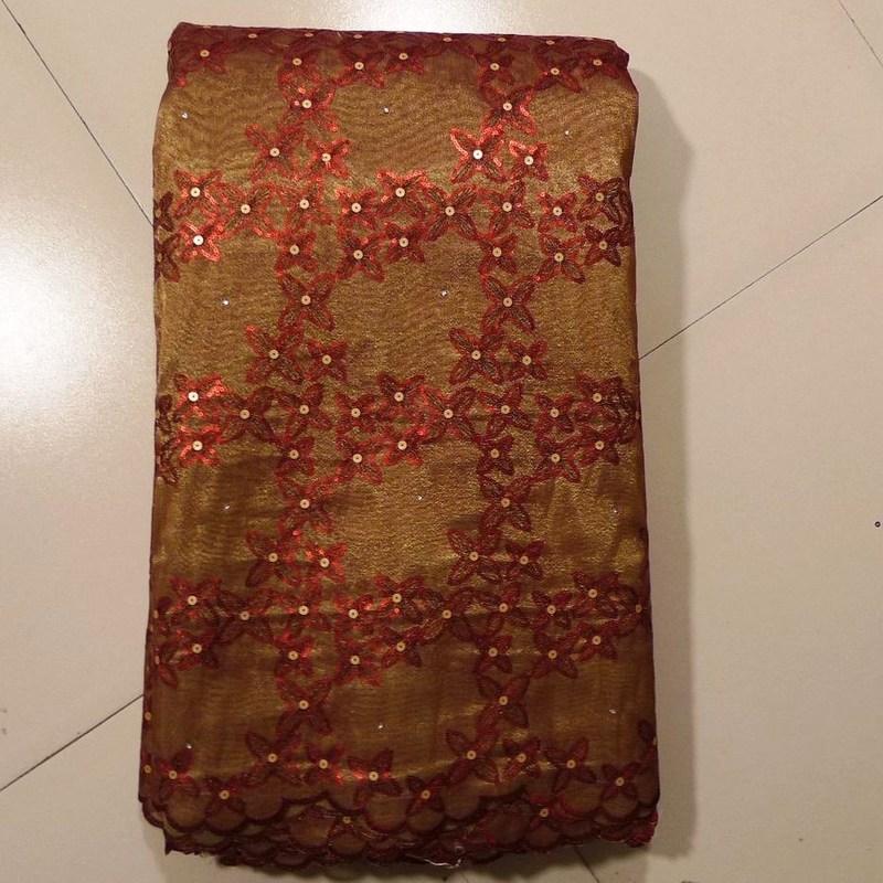 Bridal Dress Lace Fabric 1. Color:WINE 2. Technics: Embroidered 3. Material:Swiss metallic +net 4. Weight :4-5kgs 5. Width:130-135cm 6. Feature:with sequence,stones 7. Use:grande toilette Swiss metallic Ground Embroidery Lace for Garments or for wedding Party Dress , grande toilette with sequence , stones & pearl. HOH DESIGNS Quick Details Product Tpye: Fresh Lace Supply Type: Ready goods Material: Swiss metallic +net Pattern: Embroidered Width: 130-135cm Yarn Count: 15