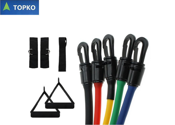 Resistance Tube Exercise Workout Elastic Stretch Band Set With Door Anchor and Ankle Strap Specifaction Name Fitness Resistance Bands Application Pilates, yoga, toning and strengthening exercises Color Customized Feature Comfortable foam grips with durable latex Material Durable rubber Certificate SGS, ROHS Description 1. TOPKO Latex resistance bands is made of highest quality, continuos dipped Malassyan natural latex. Ankle strap and Foam Handles made of strong and durable