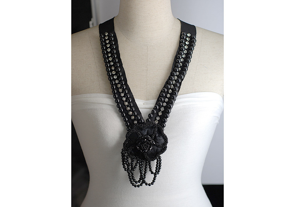 Ожерелья цветка черноты свитера NL-1307 коренастые Handmade вышитый бисером для дамы