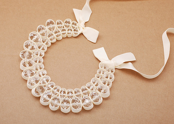 ลูกปัดคริสตัลเครื่องประดับริบบิ้นสีเบจ Handcrafted สร้อยคอ (NL-489)