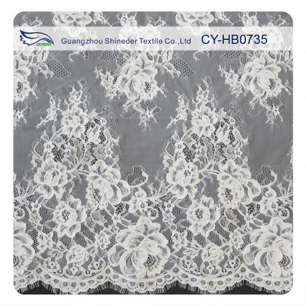 โพลีเอสเตอร์ผ้าปักลูกไม้ขนนกสีขาวและลายผ้าไหมแก้วสีดำ