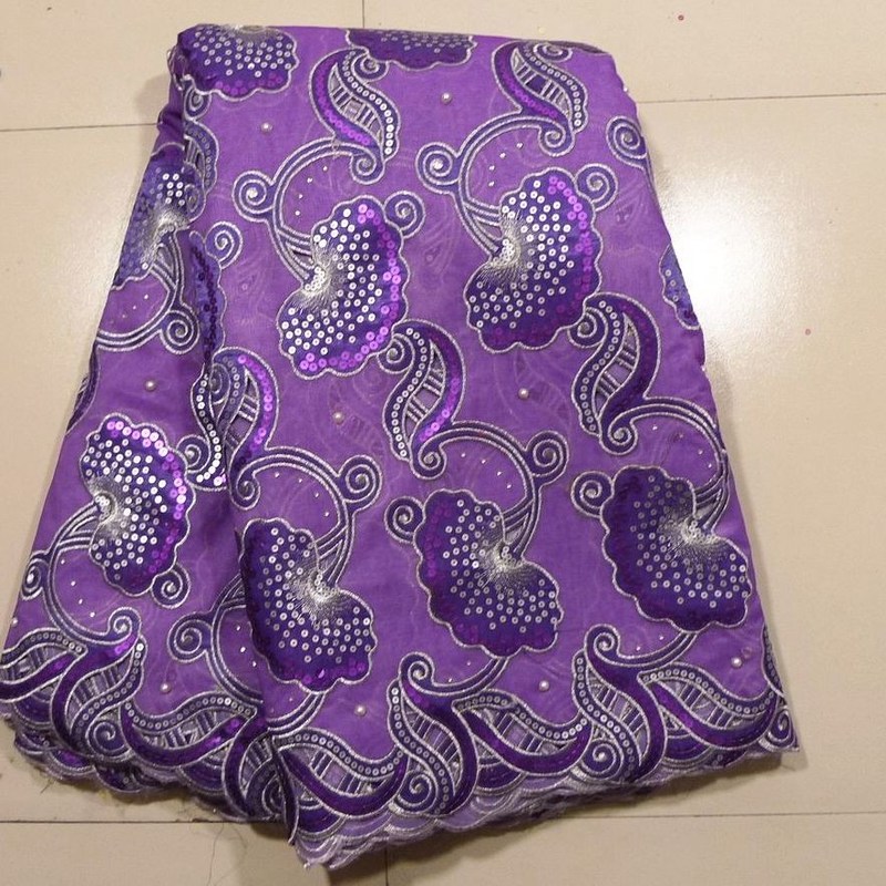Purple Swiss Net Lace Fabric , 130 - 135cm Width 1. Color:purple 2. Technics: Embroidered 3. Material: Organza 4. Weight :4-5kgs 5. Width:130-135cm 6. Feature:with sequence,stones, pearls 7. Use:wedding Dresses Net Lace+ Organza Embroidery Lace for Garments or for wedding Party Dress , with sequence , stones, handcut holes & pearls . Quick Details: Product Tpye: Fresh Lace Supply Type: Ready goods Material: Organza Pattern: Embroidered Width: 130-135cm Yarn Count: 15 Weight: