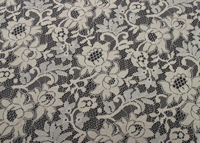 โพลีเอสเตอร์ผ้าปักลูกไม้ขนนกสีขาวและลายผ้าไหมแก้วสีดำ