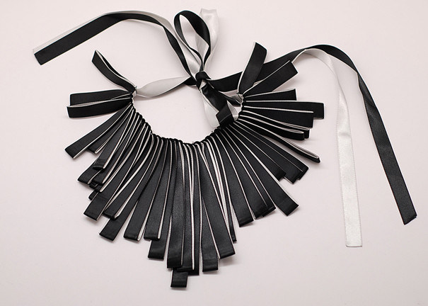 NL-487 katlanmış saten şerit yaka kolye El yapımı kolye, el işi kolye