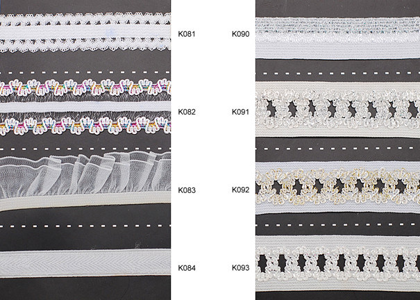 009 Sentetik Kuşgözeli Kablolu Dokuma Beyaz Elastik Dantel Şerit ve Naylon Şeffaf Bant