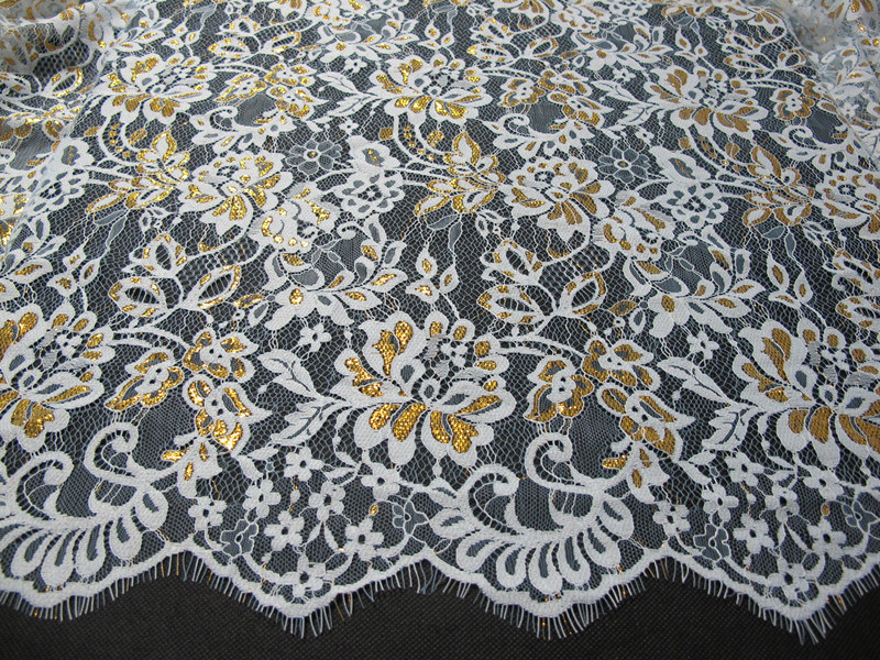 Vàng kim loại Nylon lông mi ren trang trí cho trang phục thời trang 140cm chiều rộng