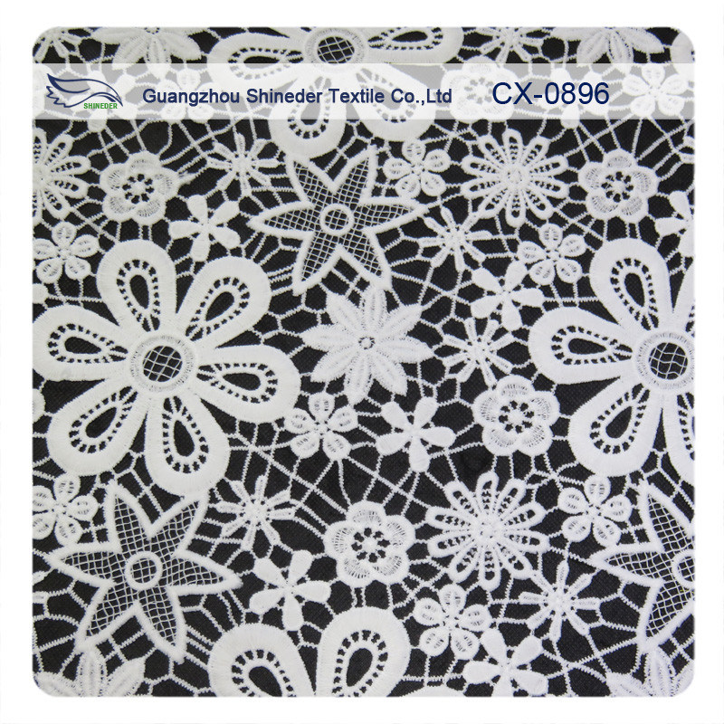 Polyester thêu ren vải lông trắng và mẫu organza đen