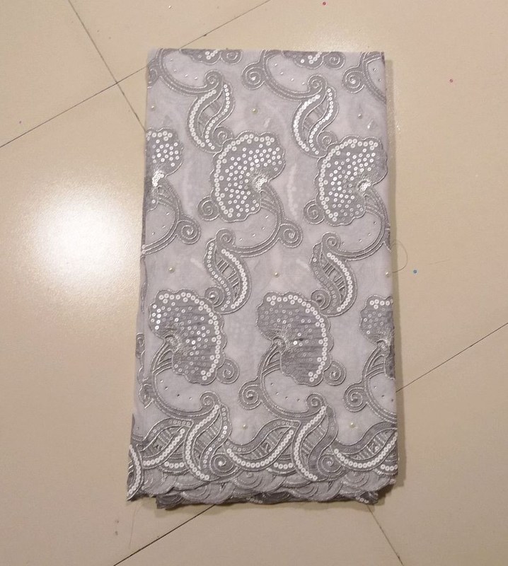 White Grey Swiss Lace Fabric , Ladies Bra Party Dress 1. Color:WHITE+GREY 2. Technics: Embroidered 3. Material: Organza 4. Weight :4-5kgs 5. Width:130-135cm 6. Feature:with sequence,stones 7. Use:ladies bra Net Lace+ Organza Embroidery Lace for Garments or for wedding Party Dress , ladies bra with sequence , stones, handcut holes & pearls . Quick Details: Product Tpye: Fresh Lace Supply Type: Ready goods Material: Organza Pattern: Embroidered Width: 130-135cm Yarn Count: 15