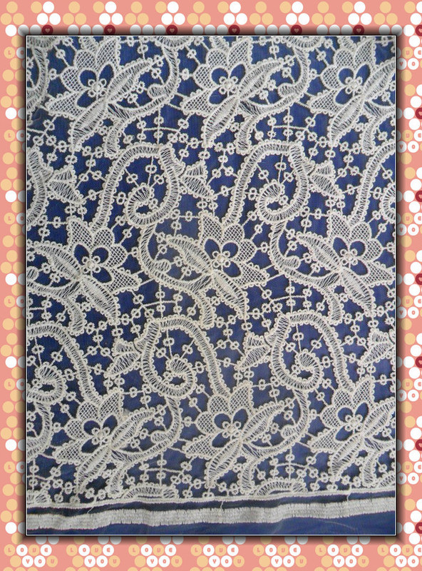 Polyester thêu ren vải lông trắng và mẫu organza đen